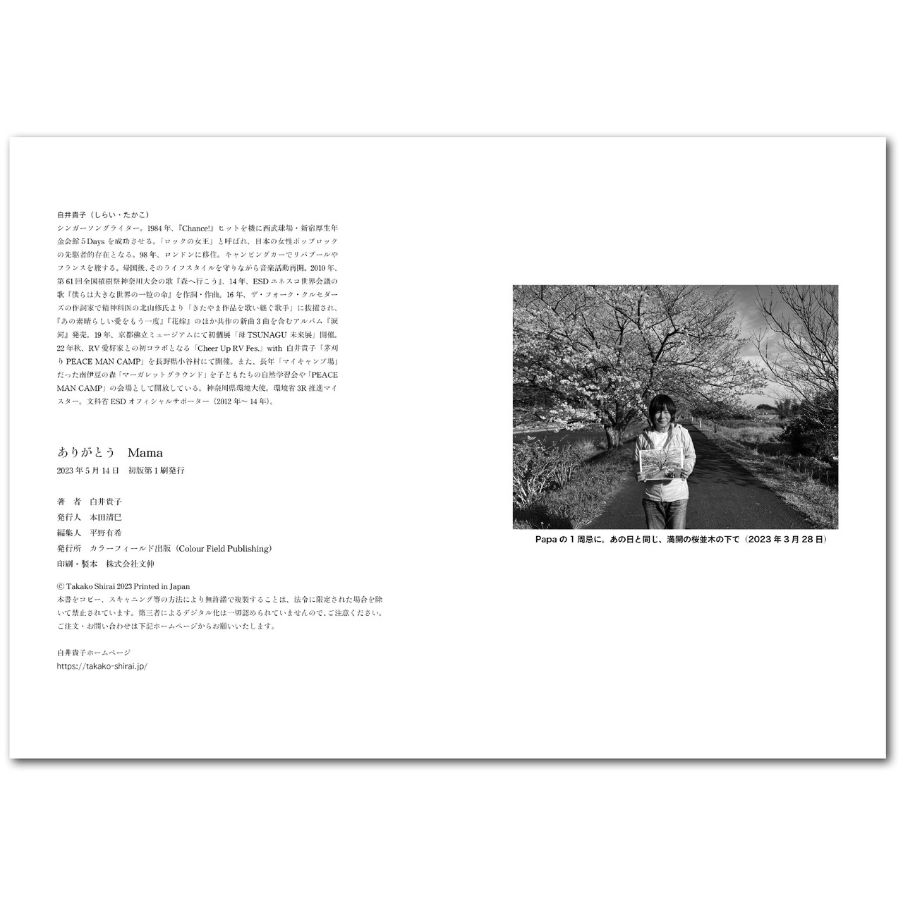 昨年5月に他界した母、昨年3月に他界した父、そして6年前に認知症とALSを併発し亡くなった叔母――。介護から看取り、自宅で執り行った葬儀まで、リアルな体験を元に綴った本『ありがとうMama』。たくさんの思い出とともに、介護の現実や、それを支える50~60代の「わたしたち世代」の奮闘と葛藤。そして「ひとりで辛く苦しい介護」は「介護新時代」へと動き出す!「ウルトラ身内のお話」が母の愛の尊さを伝え、「わたしたち世代」を勇気づけるメッセージに。白井貴子、生まれて初めての著書。